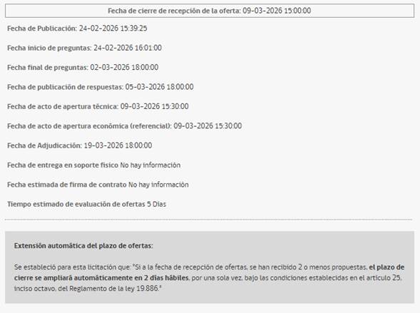 - Cierre de recepción de ofertas: 09 de marzo de 2026