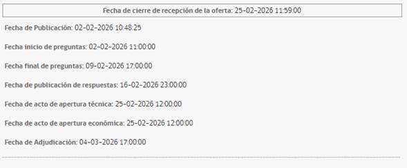 - Cierre de recepción de ofertas: 25 de febrero de 2026