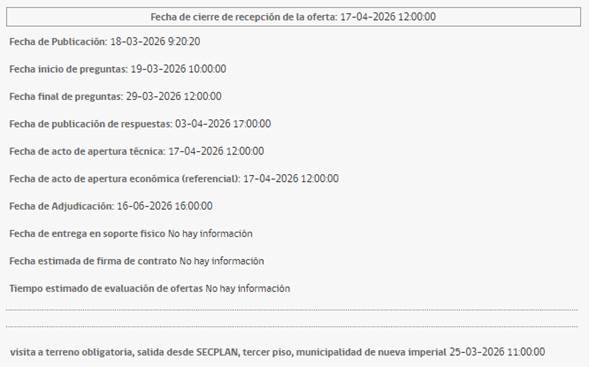 - Cierre de recepción de ofertas: 17 de abril de 2026