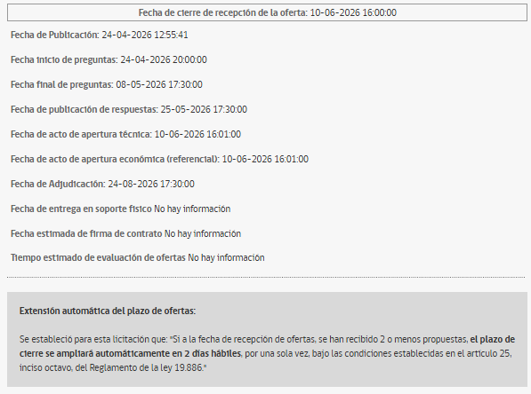- Cierre de recepción de ofertas: 10-06-2026