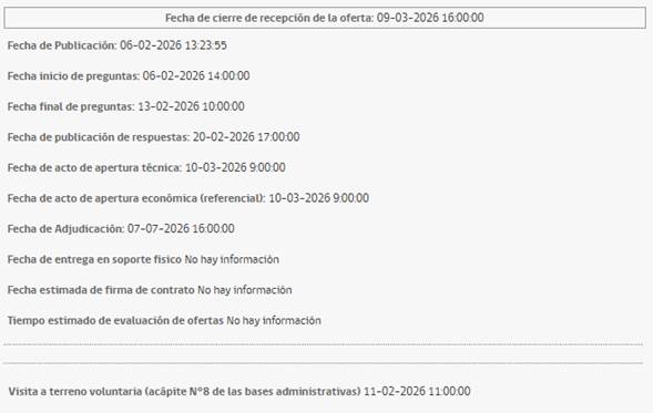 - Cierre de recepción de ofertas: 09 de marzo de 2026