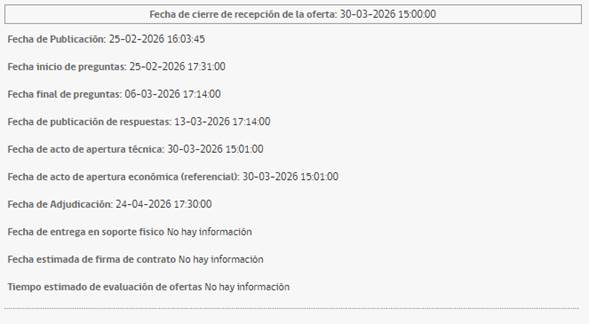 - Cierre de recepción de ofertas: 30 de marzo de 2026