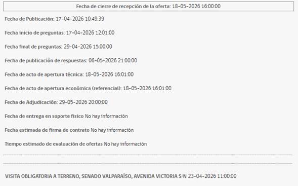 A continuación, se presenta el calendario del proceso licitatorio, para que pueda planificar oportunamente su participación.