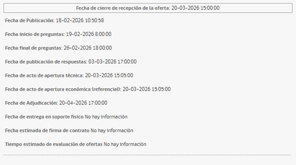 - Cierre de recepción de ofertas: 20 de marzo de 2026