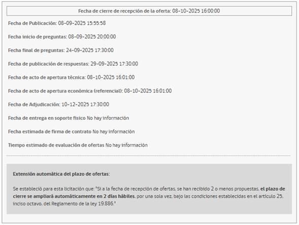 A continuación, compartimos el calendario de etapas y plazos de la licitación, información clave para organizar la participación en esta oportunidad.