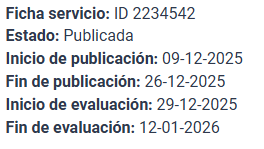 La fecha de publicación fue el 9 de diciembre de 2025 y el cierre de recepción de ofertas será el 26 de diciembre de 2025.