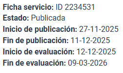 La fecha de publicación fue el 27 de noviembre de 2025 y el cierre de recepción de ofertas será el 11 de diciembre de 2025.