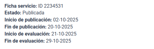 La fecha de publicación fue el 2 de octubre de 2025 y el cierre de recepción de ofertas será el 20 de octubrte de 2025.