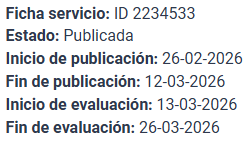 La fecha de publicación fue el 26 de febrero y el cierre de recepción de ofertas será el 12 de marzo.