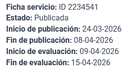 La fecha de publicación fue el 24 de marzo y el cierre de recepción de ofertas será el 08 de abril.
