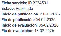 La fecha de publicación fue el 21 de enero y el cierre de recepción de ofertas será el 04 de febrero.