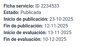 La fecha de publicación fue el 23 de octubre de 2025 y el cierre de recepción de ofertas será el 12 de noviembre de 2025.