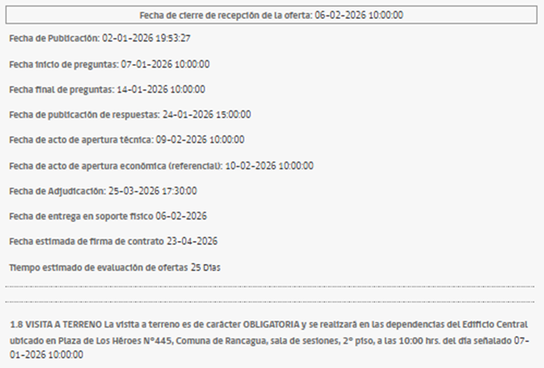 En caso de estar interesados en postular a esta licitación, les recordamos que la fecha de cierre de recepción de ofertas es el 6 de febrero de 2026.