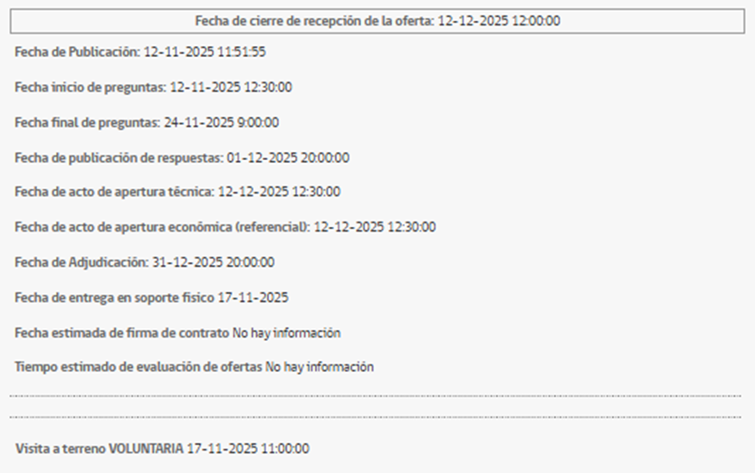 A continuación, les presentamos el calendario de la licitación para que consideren su participación.