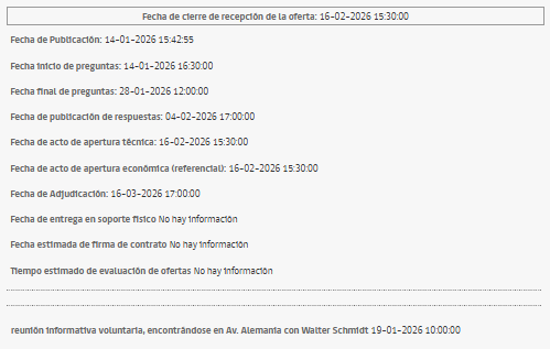 En caso de estar interesados en postular a esta licitación, les recordamos que la fecha de cierre de recepción de ofertas es el 16 de febrero de 2026.