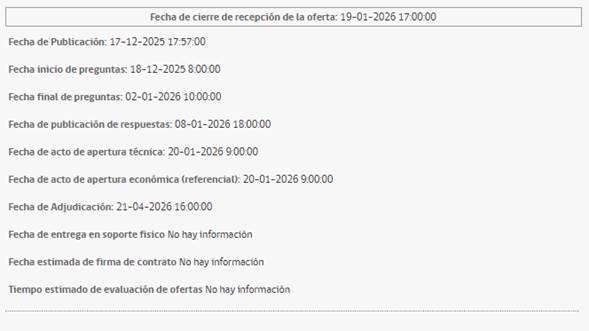 A continuación, les presentamos el calendario de la licitación para que consideren su participación.