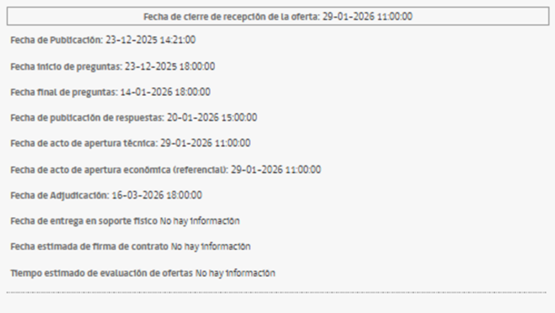 A continuación, les presentamos el calendario de la licitación para que consideren su participación.