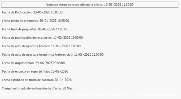 A continuación, se presenta el calendario del proceso licitatorio, para que pueda planificar oportunamente su participación.