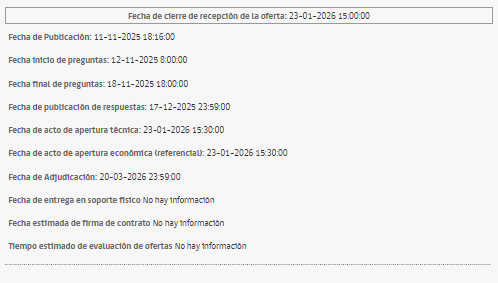 La licitación, bajo el ID: 2239-6-LR25, anunció que se extenderá el cierre de ofertas, por un plazo de 3 días hábiles, dejando como nueva fecha de cierre de ofertas, el día 23 de enero del 2026.