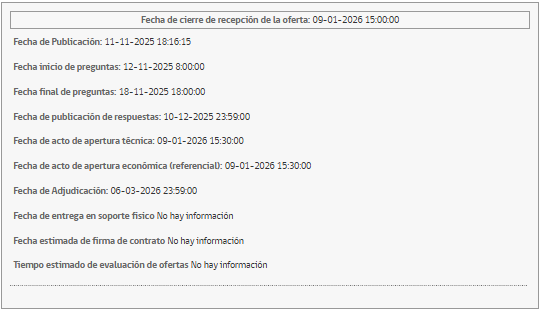 En caso de dudas, la etapa de preguntas comenzó el 12 de noviembre y se extenderá hasta la fecha que indique el portal, siendo esta la instancia oficial para resolver inquietudes relacionadas con la licitación.